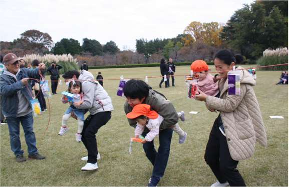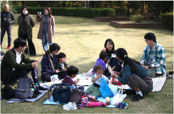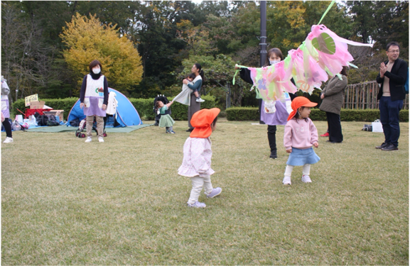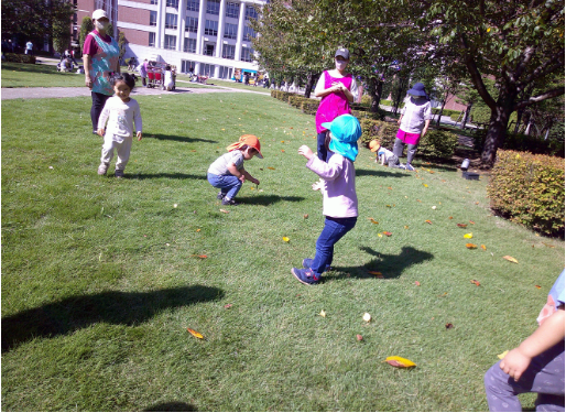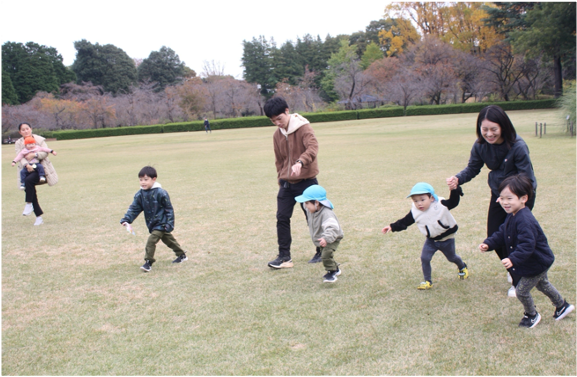 【秋の遠足】広い芝生の上でかけっこをしたり、お弁当を食べたりと充実した時間でした。